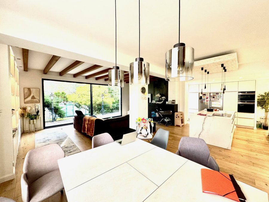 MAGNIFIQUE MAISON DE MAITRE - THIONVILLE : 995 000 EUR FAI . Implantée sur un terrain à l'abri des regards et arboré de 17 ares, cette propriété se distingue par son charme et ses prestations de qualité :piscine couverte et chauffée, double garage motorisé et parking extérieur.La maison d'une surface de 260 m2, entièrement rénovée en 2021 comprend : Au rez-de-chaussée : un double séjour de 45 m2 exposé sud menant à un espace de vie principal de 65 m2 avec cuisine équipée ouverte, salle à manger et salon avec cheminée donnant sur terrasse de 30 m2. Au premier étage : suite parentale avec salle de bains et terrasse privée, deux chambres et grande salle de bains avec baignoire à remous, douche et wc . Au deuxième étage : deux chambres, salle de bain et grenier aménageable d'environ 40 m2 (possibitilité de faire deux pièces supplémentaires) Chauffage moderne (pompes à chaleur , sol chauffant) Isolation optimisée garantissant un confort maximal, aboutissant à un diagnostic énergétique classé B.